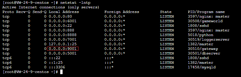 通过判断端口9001是否还处在监听状态判断游戏是否正常,异常重新执行启动命令。