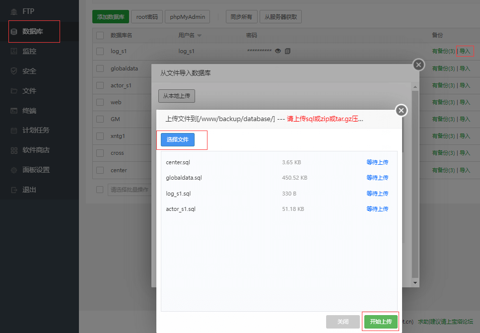 从本地上传.sql的数据库文件