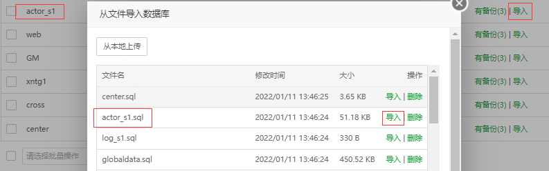 1、新建log_s999和actor_s999数据库,并导入数据;
