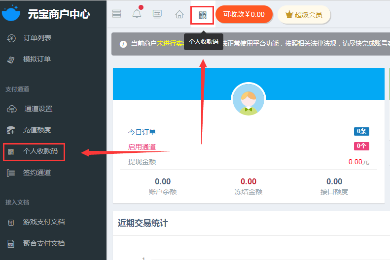 实名认证通过系统会赠送500元接口收款额度,可以免费收款500元;